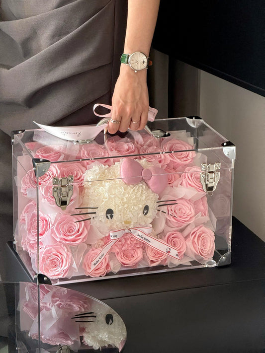 Elegant Hello Kitty Preserved Rose Suitcase | Hello Kitty-Inspired Forever Flower Gift