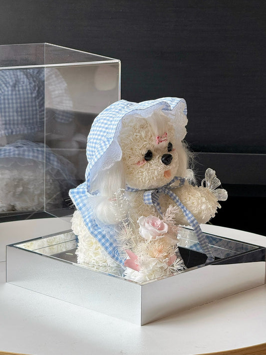 Blue Gingham Rose Puppy | Handmade Preserved Flower Puppy