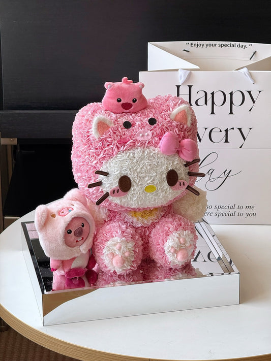 Beaver Hello Kitty Preserved Flower Doll | Handmade Forever Flower Display
